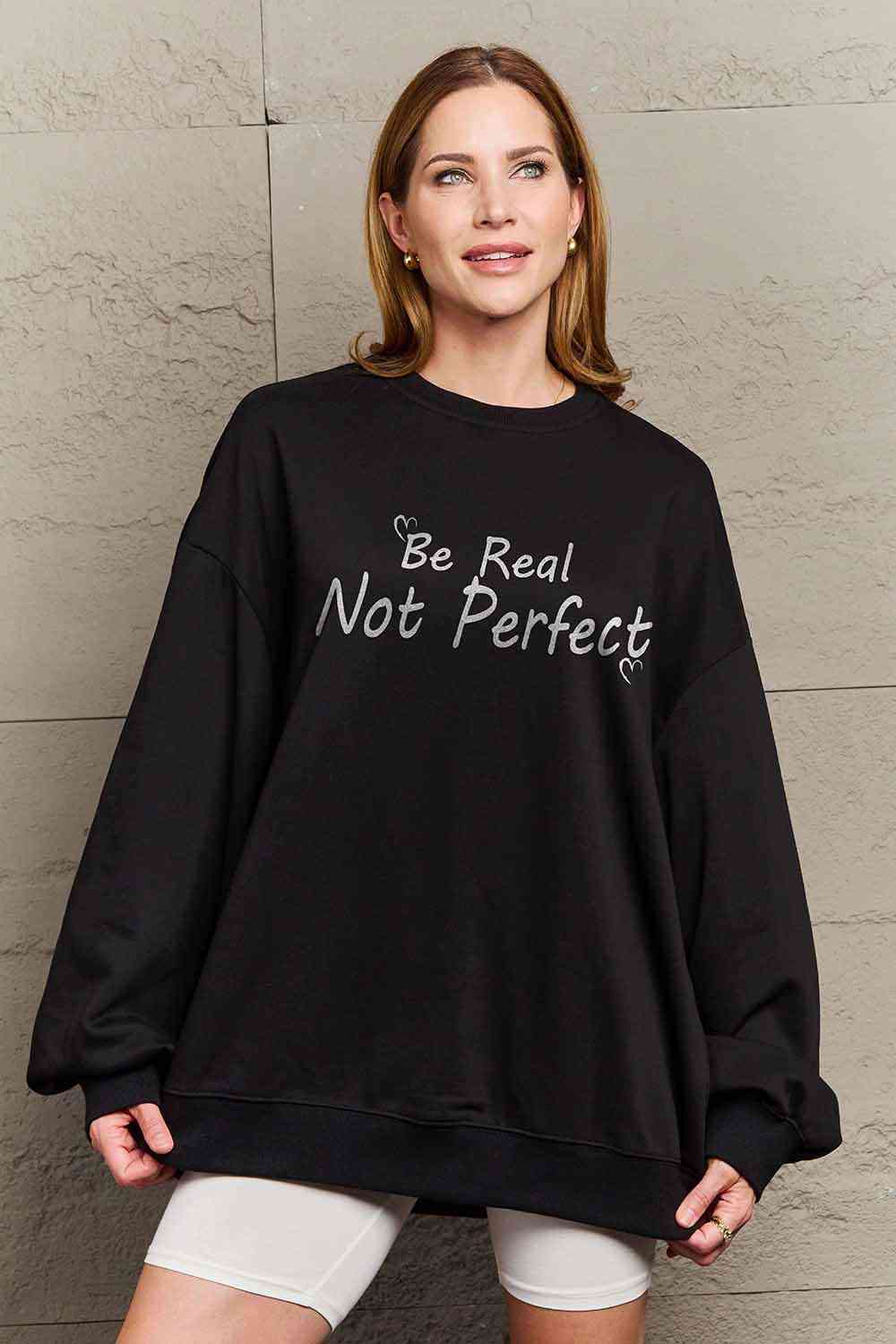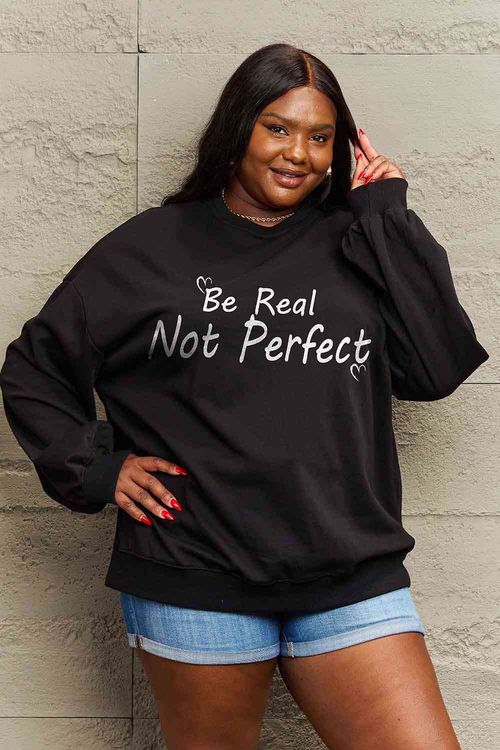 Simply Love Full Size BE REAL NOT PERFECT Graphic Sweatshirt